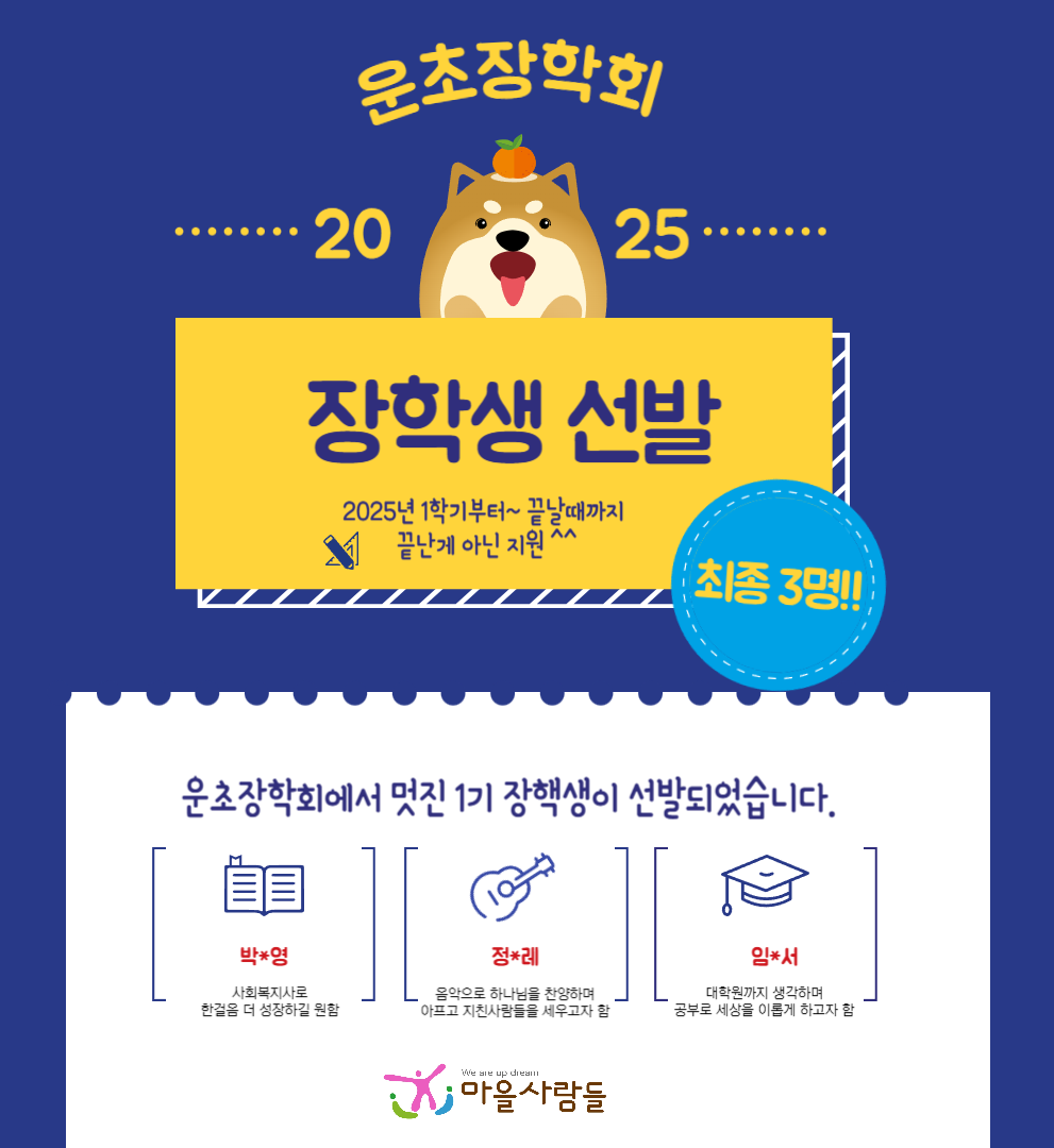 60살에는 장학회를 해야겠다던 소원을 당겨 어머니 임영희 님의 호 운초(雲草)를 붙혀 장학회를 설립하게 되었습니다.